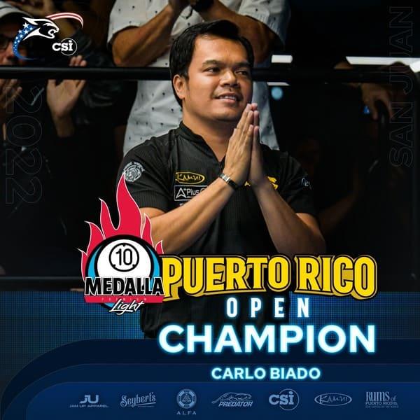 En el nuevo evento organizado por PREDATOR incluido en el programa PRO BILLIARD SERIES⎘ realizado en el país Puerto rico y con una asistencia de 128 jugadores de todo el mundo en la modalidad de bola 10 y con una bolsa de premios de 100.000$.